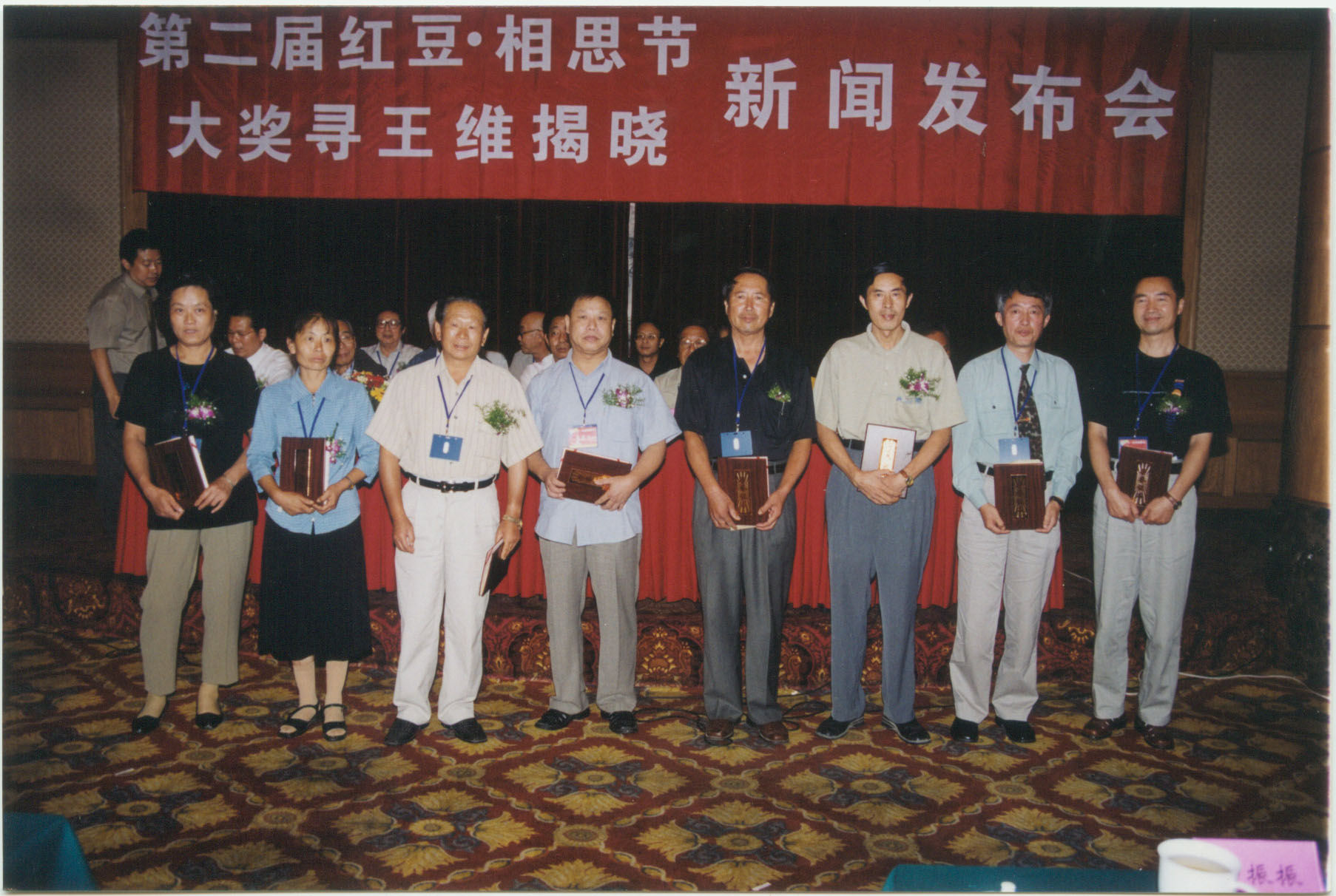 7月15日,“七夕紅豆·相思節(jié)詩詞大賽”歷經(jīng)三個(gè)半月截稿,據(jù)統(tǒng)計(jì)此次大賽共收到美、英、日、法、加拿大、新西蘭、泰國等十幾個(gè)國家和兩岸三地參賽稿件108000多篇,參賽者達(dá)到了31000多人。7月24日,臺(tái)灣著名詩人余光中欣然作《紅豆》詩一首,并電傳到紅豆集團(tuán)。7月25日,大賽組委會(huì)把進(jìn)入復(fù)評(píng)的隱名稿件送往北京,由大賽評(píng)委會(huì)進(jìn)行復(fù)評(píng)、終評(píng)。7月30日,大賽評(píng)委會(huì)經(jīng)過反復(fù)評(píng)審、打分后,評(píng)出所有“七夕紅豆·相思節(jié)詩詞大賽”獲獎(jiǎng)作品。 8月14日,“七夕紅豆·相思節(jié)詩詞大賽”(20萬大獎(jiǎng)尋當(dāng)代王維)揭曉新聞發(fā)布會(huì)在無錫錦江大酒店舉行,來自北京的詩人劉征以一首古風(fēng)《紅豆曲》摘取了桂冠。紅豆集團(tuán)董事局主席周耀庭、著名詩人賀敬之、孫軼青、全國政協(xié)委員顧蔚慶等參加了這次發(fā)布會(huì),并給獲獎(jiǎng)?wù)哳C發(fā)了獲獎(jiǎng)證書與獎(jiǎng)金。