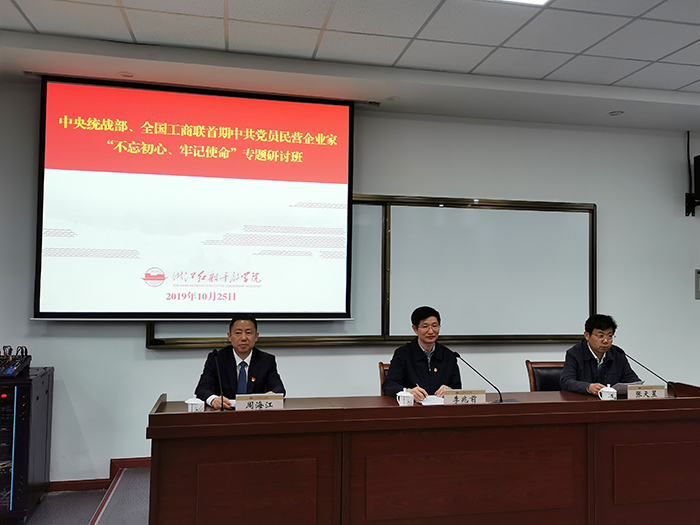 Zhou Haijiang said that the party members of the private entrepreneurs also came here following the footsteps of the general secretary, which will help the students to continue to deeply study and implement Xi Jinping Thought on Socialism with Chinese Characteristics for a New Era, and effectively strengthen the "consciousness of the need to maintain political integrity, think in big-picture terms, follow the leadership core, and keep in alignment", firm "confidence in the path, theory, system, and culture of socialism with Chinese characteristics", resolutely uphold General Secretary Xi Jinping’s core position on the Party Central Committee and in the Party as a whole, and resolutely uphold the Party Central Committee’s authority and its centralized, unified leadership. From an economic point of view, the current economic form is complex, the domestic economy is in a critical period of climbing the hurdle. Externally, we need to face trade wars, and we must transform and upgrade domestic enterprises. There are also three major challenges and the situation is very grim. This seminar will help trainees to further strengthen their confidence and overcome difficulties. From a social point of view, these party members and entrepreneurs have a high influence, and each enterprise has as many as tens of thousands of employees. Each entrepreneur is also a leader in their fields, which is conducive to leading the entire group of entrepreneurs to Be honest and take the right path.