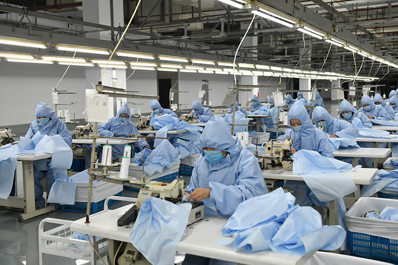 2月5日下午,走進(jìn)紅豆股份新建成的西服車間,只見一派熱火朝天的繁忙景象。面對疫情,這個(gè)新車間一夜之間被改造成的防護(hù)服生產(chǎn)車間,200多名工人戴著口罩,正在加緊趕制防護(hù)服?!胺雷o(hù)服是緊缺的醫(yī)療物資。為了支援抗疫前線,我們2月1日啟動了防護(hù)服生產(chǎn)。”紅豆股份常務(wù)副總經(jīng)理顧金龍介紹,起初,大家心里都沒底,畢竟沒涉足過這個(gè)領(lǐng)域。但紅豆股份有成熟的服裝生產(chǎn)技術(shù),為一般防護(hù)服實(shí)現(xiàn)快速生產(chǎn)創(chuàng)造了有利條件。