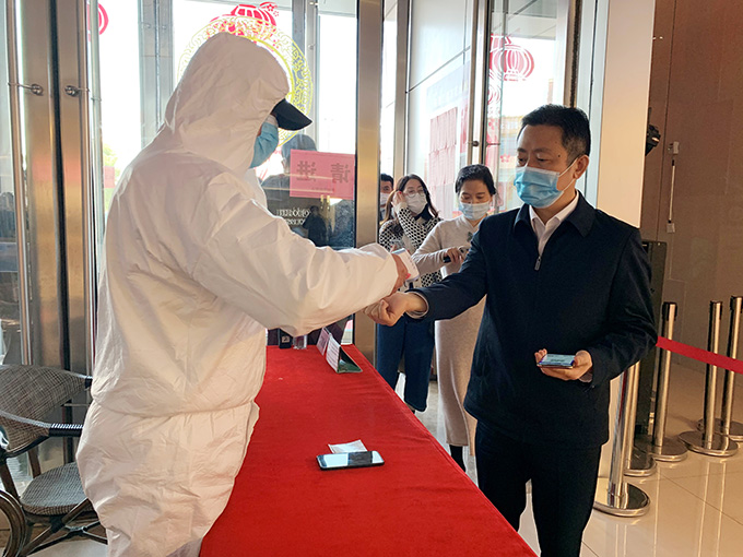 為餐飲行業(yè)打CALL!3月15日星期天中午,紅豆集團董事局主席兼CEO周海江帶領(lǐng)集團黨員干部來到剛剛恢復(fù)營業(yè)的無錫東港紅豆萬花城蜀大俠火鍋店,通過測溫、掃錫康碼包括手部消毒后進入店堂點餐消費,以實際消費行動支持中小企業(yè)的復(fù)蘇。