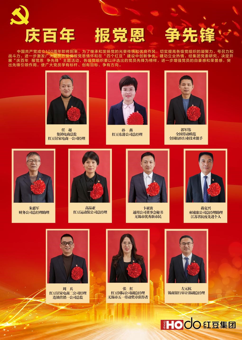紅豆集團(tuán)“慶百年 報(bào)黨恩 爭先鋒”主題活動(dòng)首批“黨員先鋒”