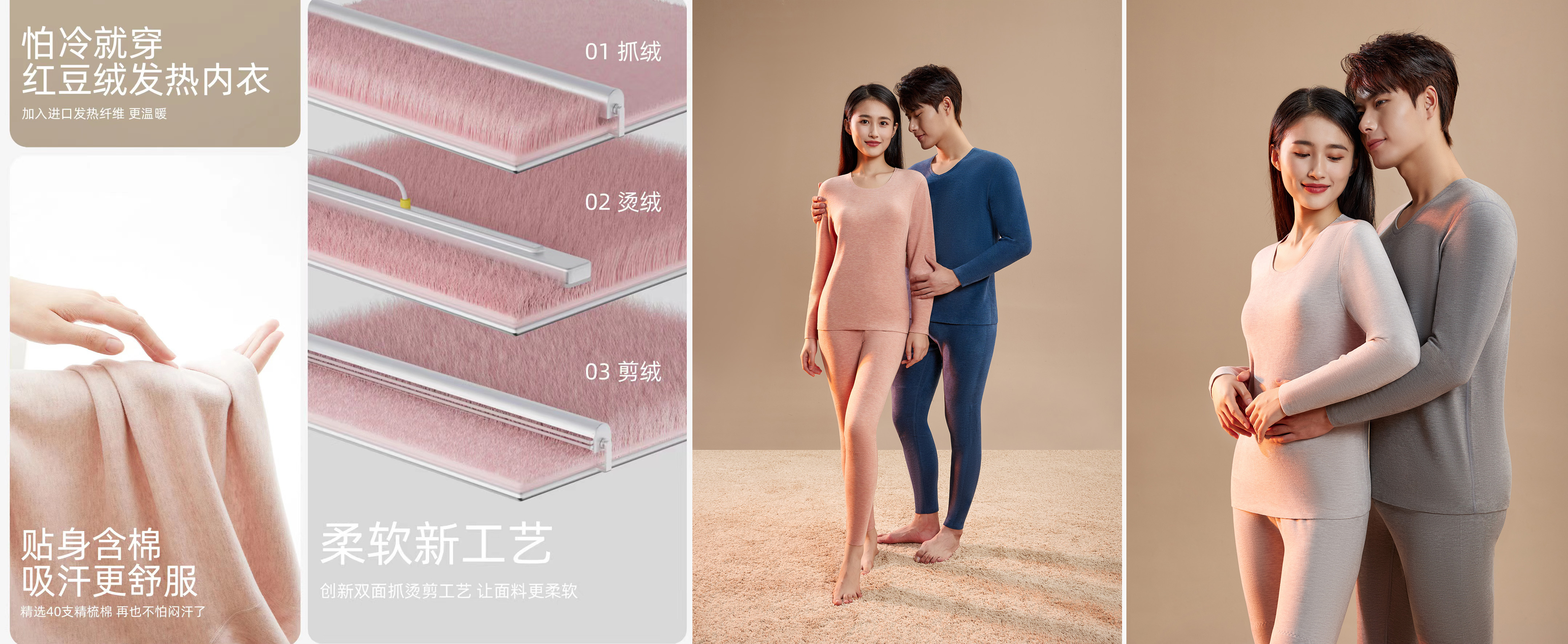 通過不斷研究內(nèi)衣科學(xué),“紅豆絨柔軟型內(nèi)衣”全國熱銷超1.7億件,“嬰兒綿柔軟型文胸”成為千萬女性舒適之選,“紅豆紅內(nèi)衣系列”也成為消費(fèi)者節(jié)慶必購產(chǎn)品。