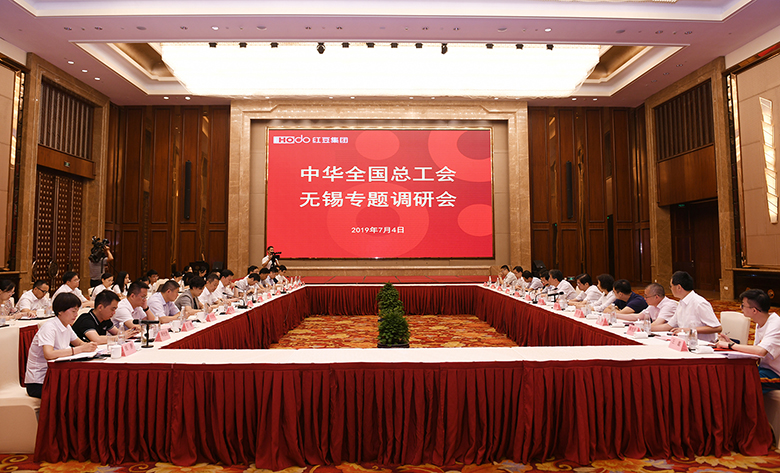 在隨后召開的調(diào)研座談會上,無錫市委常委、市總工會主席陳德榮匯報了無錫市產(chǎn)業(yè)工人隊伍改革建設(shè)推進情況,紅豆集團黨委副書記、工會主席王竹倩就紅豆產(chǎn)業(yè)工人隊伍建設(shè)情況作了工作匯報,紅豆產(chǎn)業(yè)工人隊伍建設(shè)的最大特色是職工隊伍穩(wěn)定,通過實施“四鑄四有”工程,形成了極高的員工忠誠度,成為企業(yè)穩(wěn)定發(fā)展的基石。錫山區(qū)委副書記、區(qū)長王維,紅豆集團黨委書記、董事局主席兼CEO周海江等出席座談會。
