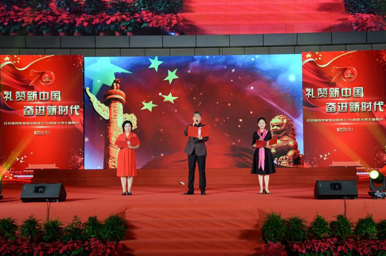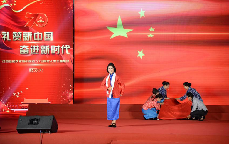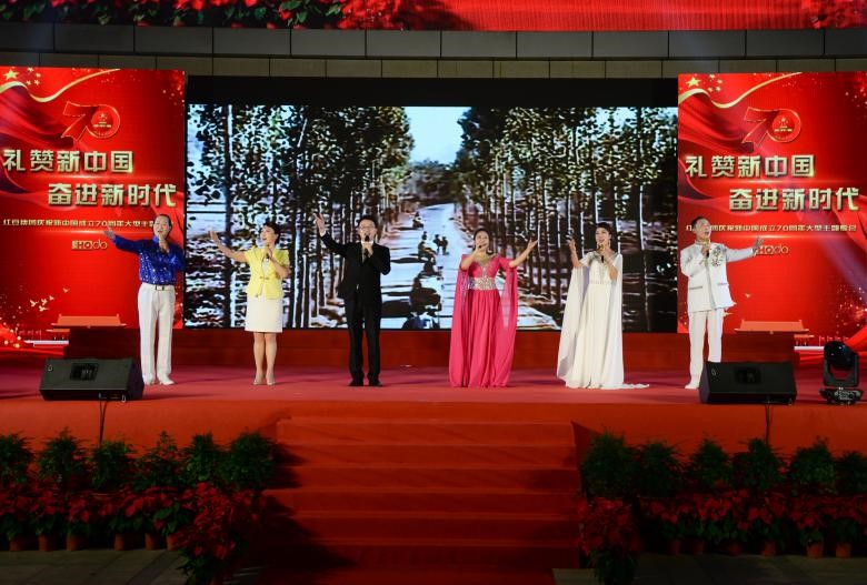 “我愛(ài)你中國(guó),我愛(ài)你中國(guó),我要把美好的青春獻(xiàn)給你,我的母親,我的祖國(guó)……”9月29日晚,由紅豆集團(tuán)主辦的“禮贊新中國(guó) 奮進(jìn)新時(shí)代”——慶祝新中國(guó)成立70周年大型主題歌會(huì)在東港紅豆萬(wàn)花城圓滿舉行。由紅豆集團(tuán)“先進(jìn)黨員”、“先進(jìn)勞?!贝砼c合唱團(tuán),一同合唱的歌曲《我愛(ài)你,中國(guó)》拉開(kāi)了歌會(huì)的序幕。整場(chǎng)主題歌會(huì)以歌曲聯(lián)唱、大合唱、經(jīng)典片段演繹及配樂(lè)朗誦等多種形式,歌唱祖國(guó),慶祝新中國(guó)70華誕。歌會(huì)濃濃的愛(ài)國(guó)情懷感染了現(xiàn)場(chǎng)每一位觀眾。