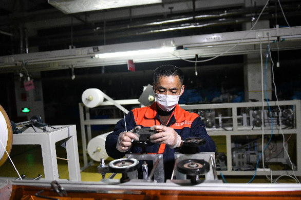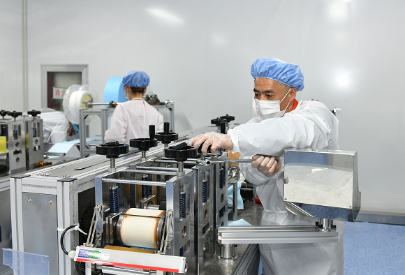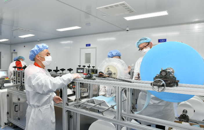 他說(shuō),剛開(kāi)始心里也沒(méi)底,畢竟沒(méi)有搞過(guò),在和小伙伴們一起研究、反復(fù)摸索后總算有了門(mén)道。吳曉東介紹,在半自動(dòng)生產(chǎn)過(guò)程中,口罩面罩的生產(chǎn)由機(jī)器完成,再由人工熔接耳帶;全自動(dòng)生產(chǎn)過(guò)程中,無(wú)紡布、熔噴布、鼻梁架、耳帶線(xiàn)等原材料只需放在對(duì)應(yīng)位置上即可,不再需要其他工序。在這些過(guò)程中,機(jī)器的精確程度都影響著次品率。長(zhǎng)途運(yùn)輸、稍有不慎,一個(gè)螺絲的松動(dòng)、一個(gè)刀口的裂紋都會(huì)影響口罩面罩的切縫、鼻梁架的位置偏移,而調(diào)試工作就是讓這些機(jī)器盡可能?chē)?yán)絲合縫,從而發(fā)揮最大效能。同樣面對(duì)陌生的設(shè)備,吳曉東憑借自身學(xué)習(xí)經(jīng)驗(yàn)和對(duì)機(jī)械的興趣與鉆研,不斷與新設(shè)備磨合,在一次次糾正和摸索中,屢屢找出最佳解決方案??谡秩詣?dòng)生產(chǎn)過(guò)程中,一條生產(chǎn)線(xiàn)出現(xiàn)了切不斷面罩的問(wèn)題,吳曉東第一時(shí)間趕到現(xiàn)場(chǎng),認(rèn)真校準(zhǔn)、仔細(xì)判斷,直到發(fā)現(xiàn)問(wèn)題出在一片刀片上,只需替換即可。診斷設(shè)備的吳曉東看著沉著冷靜,其實(shí)心里也沒(méi)底,全憑經(jīng)驗(yàn)摸黑前行,他坦言,最擔(dān)心生產(chǎn)前后道跟不上,不能保證產(chǎn)能,只能一點(diǎn)一點(diǎn)試、一點(diǎn)一點(diǎn)調(diào),和時(shí)間賽跑,直到合格的面罩一片片從出口快速飛出、全部設(shè)備滿(mǎn)負(fù)荷生產(chǎn)。從剛開(kāi)始的親自安裝調(diào)試,到后來(lái)指導(dǎo)技術(shù)人員安裝調(diào)試口罩生產(chǎn)線(xiàn),吳曉東獲得了車(chē)間管理人員和工人的一致贊譽(yù),成為技術(shù)大師傅。