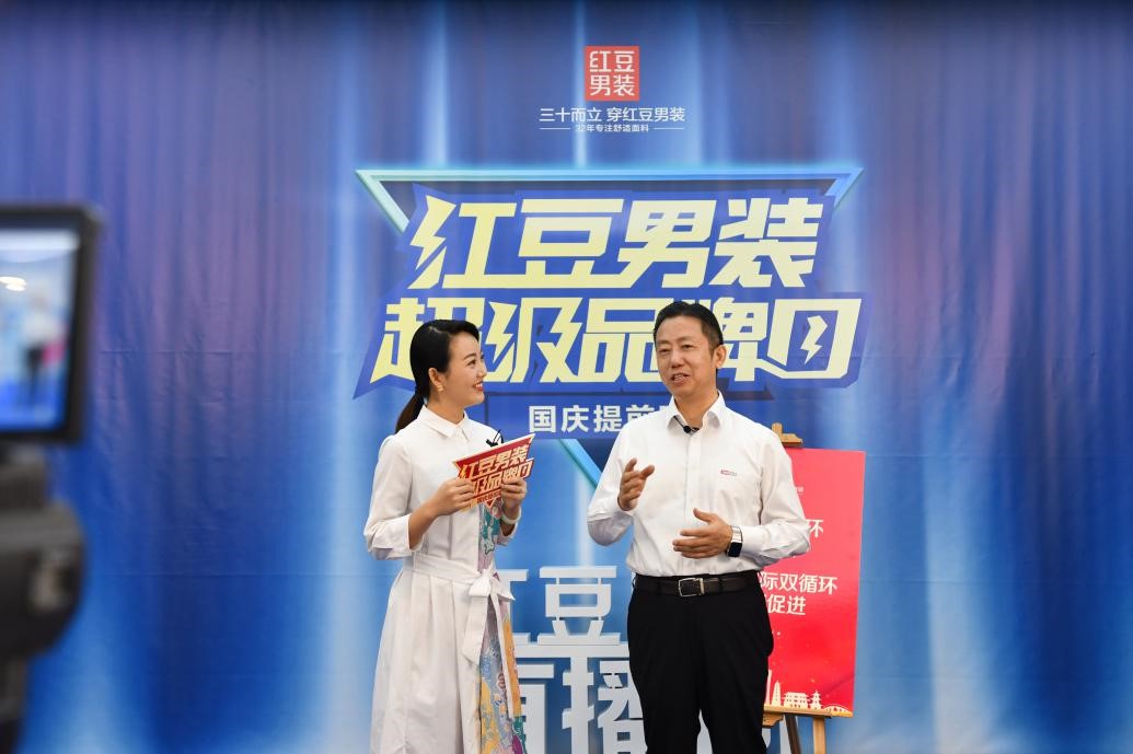 9月26日上午10點30分,正當紅豆男裝首次“超級品牌日活動”趨于白熱化之際,活動直播間空降了一位神秘大咖——紅豆集團黨委書記、董事局主席兼CEO周海江,將這場購物狂歡推向最高潮。這是周海江的直播間首秀,帶著滿滿的誠意和福利,代表品牌對品控和質(zhì)檢的絕對自信,為消費者親手挑選、親身試穿優(yōu)質(zhì)好貨,促進內(nèi)需,提振消費,展現(xiàn)民營企業(yè)家躍身“暢通雙循環(huán)”時代浪潮中的實干與擔當。