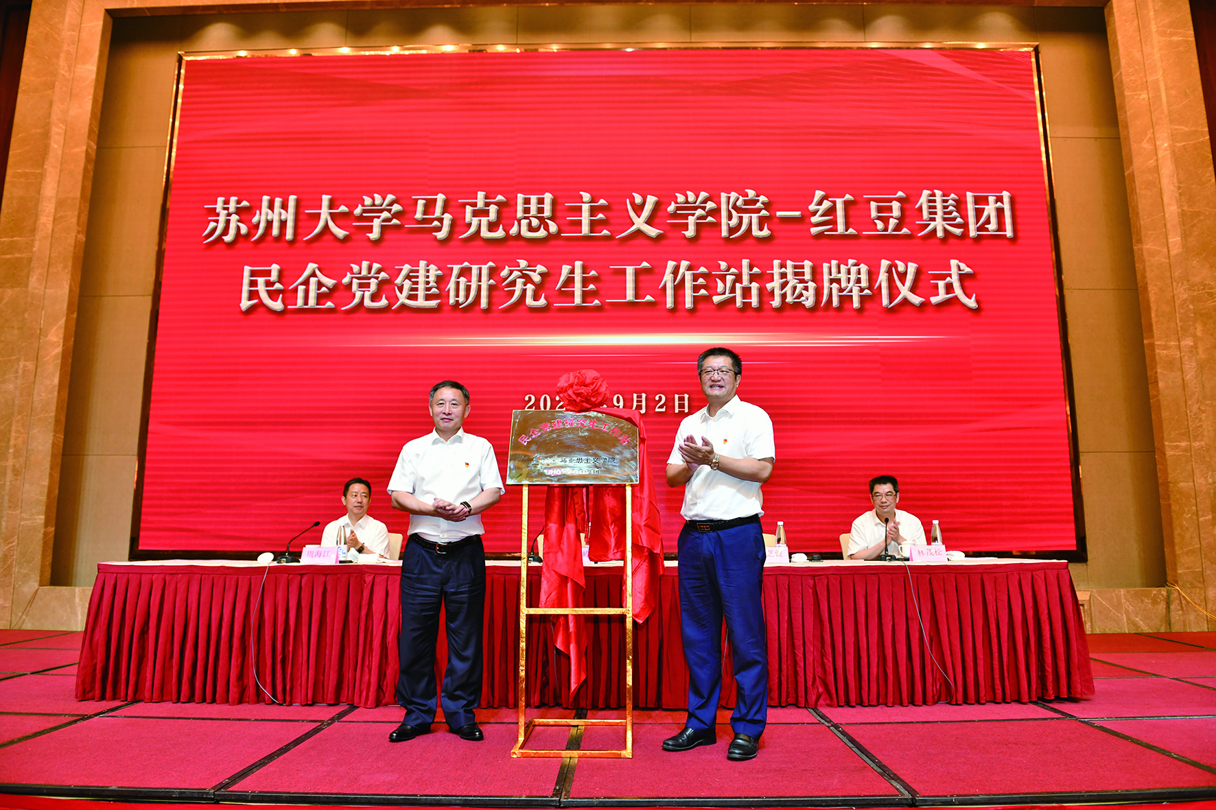 紅豆集團黨委是全國先進基層黨組織,是全國民企黨建的標桿,蘇州大學馬克思主義學院是省高校示范馬克思主義學院,田芝健教授作為學院院長、博士生導師,多次參與主持國家重大重點課題,理論功底深厚、學術視野開闊。此次,雙方協(xié)商決定成立民企黨建研究生工作站,為深化民企黨建理論研究和實踐創(chuàng)新搭建工作平臺、探索有效路徑。